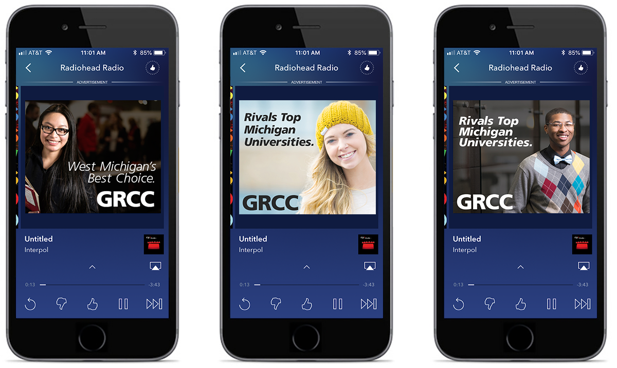 Our goal was to create a series of digital recruitment ads that focused on real students in an on-campus setting. We wanted to capture ” a day in the life” of a GRCC student, to give prospective students insight and context into what it would be like to attend.